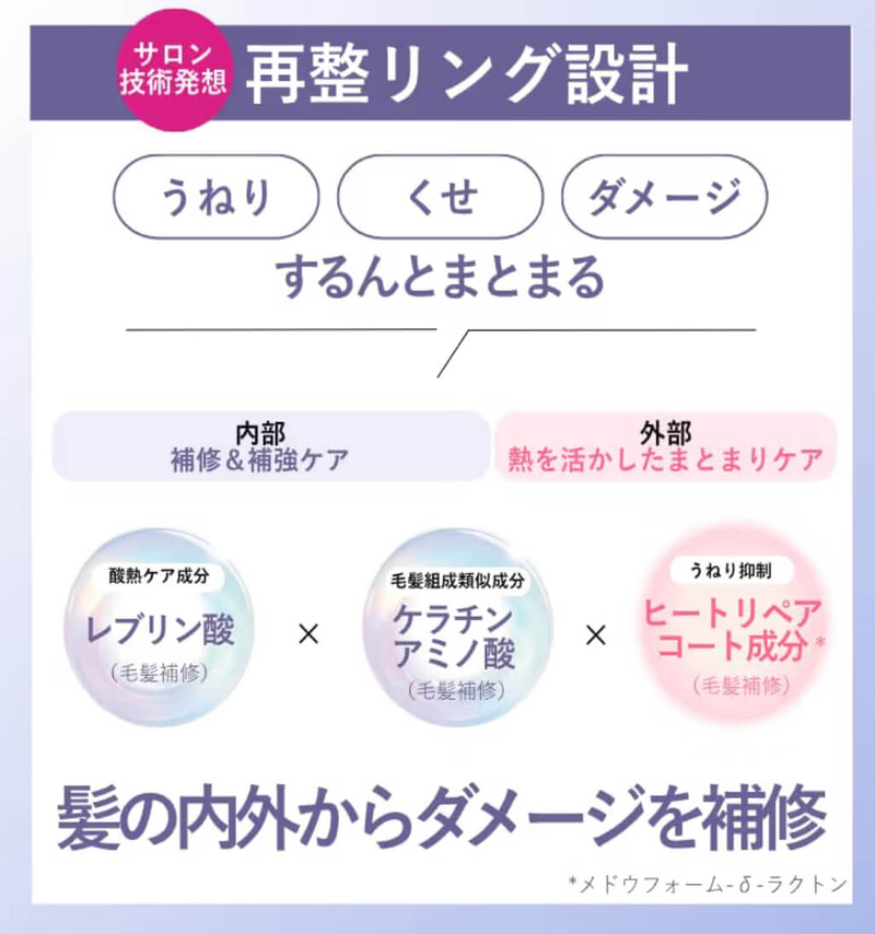 レブリン酸による酸熱ケアとケラチンアミノ酸による補修の組み合わせは、ドライヤーやアイロンを使用する方に特に適しています。熱を味方にしながら補修をサポートする点が、市販品ながら専門ケアに近い魅力を持っています。