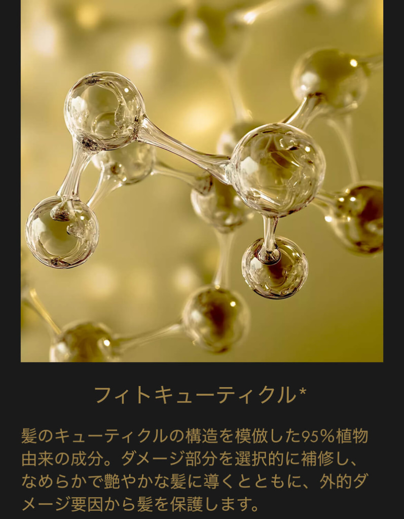 フィトキューティクル成分の働きにより、髪表面がなめらかに整えられる感覚があります。