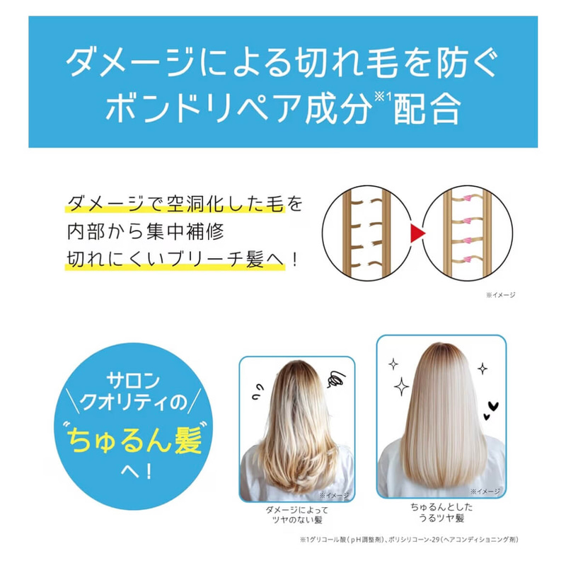 ボンドリペア成分が髪を補強し、ヒートプロテクト成分がドライヤー熱から守るサポートをします。
