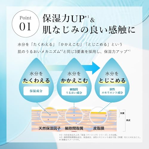 肌への負担を抑えつつ、スーッと浸透し、うるおいを角層の奥まで届けます。乾燥ピーク時期でも刺激を感じにくいのが魅力です。