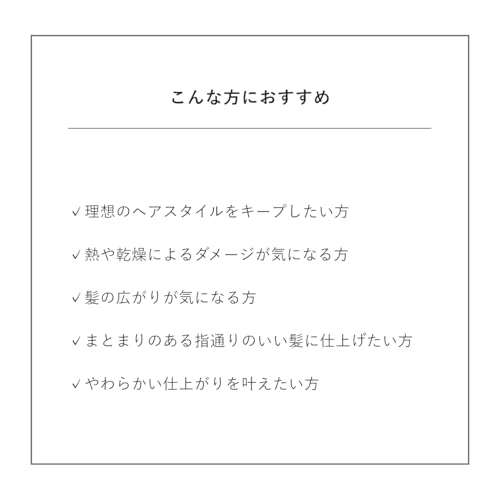 スタイリング前に使用することで、熱から髪を守りながら仕上がりを整えやすくなり、まとまり感をキープできます。