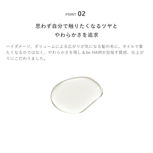 | &be スタイルキープオイル | フローラル×ムスク調が心地よく長めに残る | オイル特有のしっとり感でやや重さもある | 熱を味方にスタイルを長時間保ちやすい | 植物オイルが豊富で自然由来指数98% | 80mLで1,980円はややコスパ控えめ |