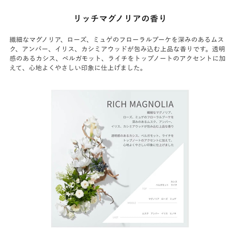 両アイテム共通のリッチマグノリアの香りが魅力です。