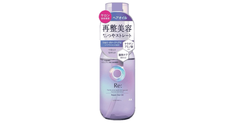 ルシードエル アールイー リペアヘアオイル | 甘く爽やかなキンモクセイ×グレープフルーツ | なめらかで重さが出やすい | 熱を使うとまとまりやすい | 泡立ちはなし(アウトバス用) | 酸熱成分+植物オイル配合 | ドラッグストアで手軽 | |