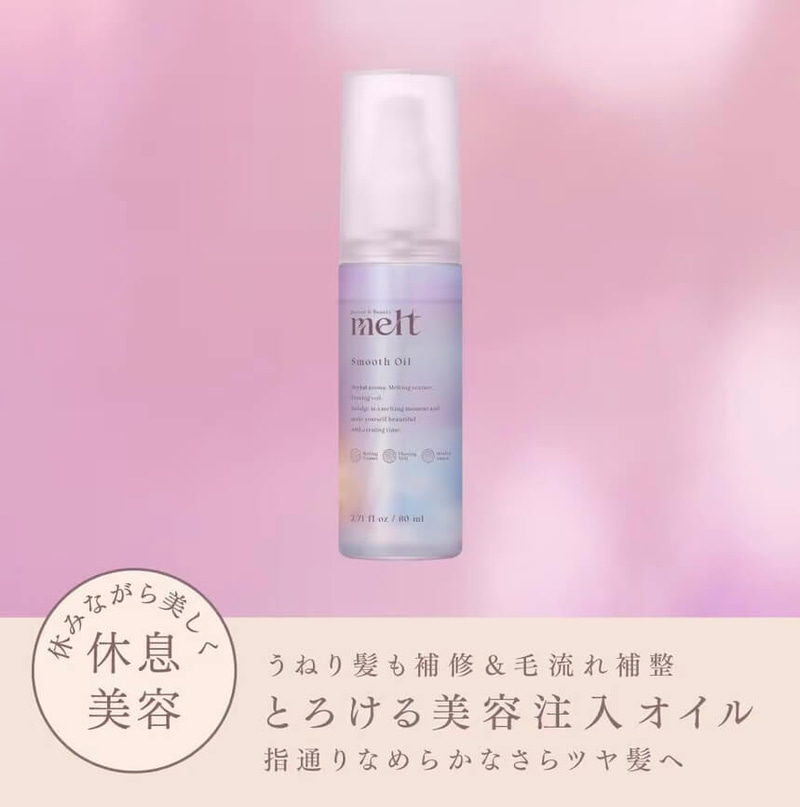 メルト スムースオイルは補修・保湿成分を多く配合し、髪内部へアプローチする設計でまとまりやすさをサポートします。