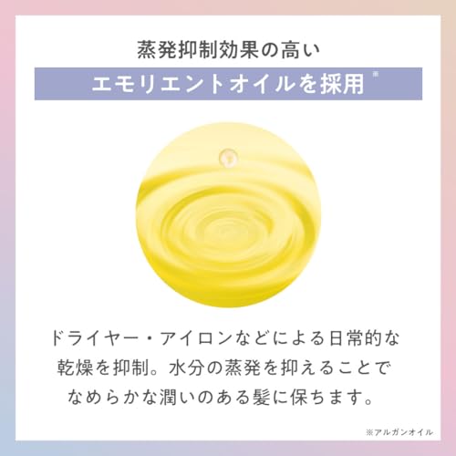 広がりやすい髪をしっとり落ち着かせ、まとまりをサポートするオイル設計です。ナノセラミドやアルガンオイルを含み、髪にうるおいを与えやすい処方になっています。