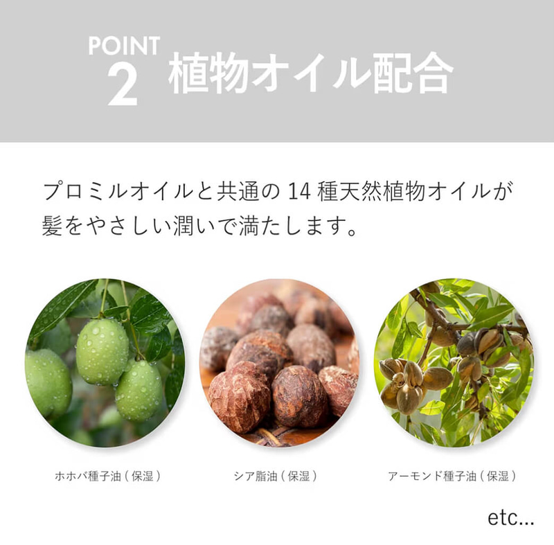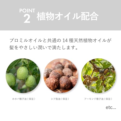 プロミルオイルクラシックブーケツヤ感でスムーズ毛束感を演出泡立ち評価対象外16種の天然由来オイル多用途設計で利便性あり