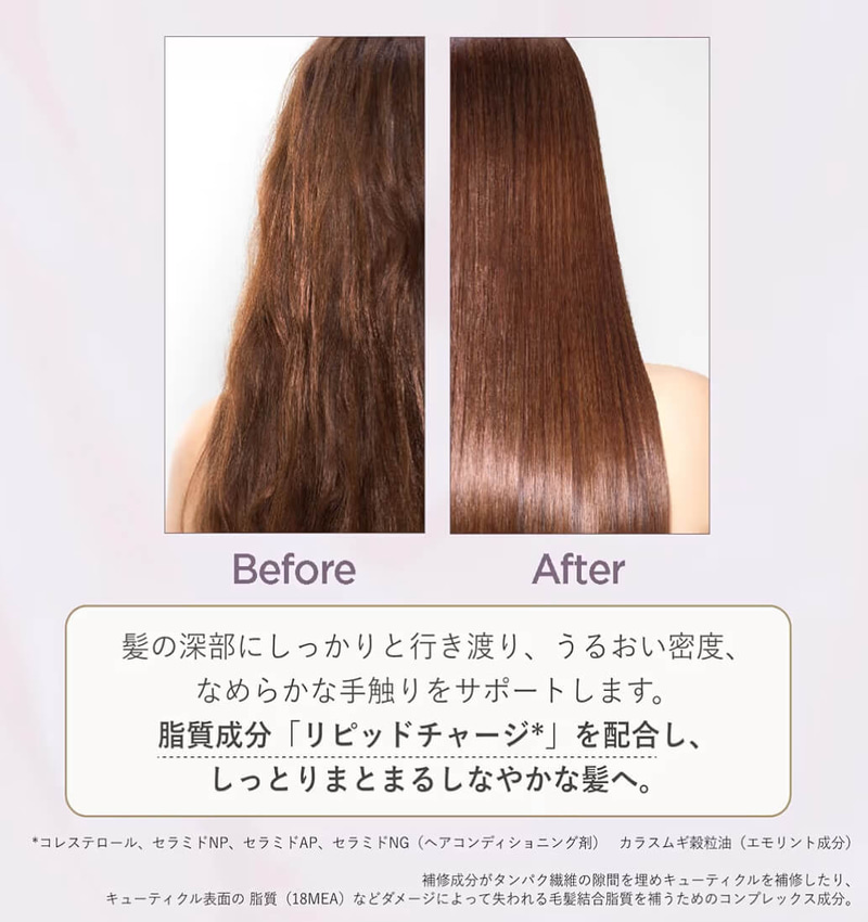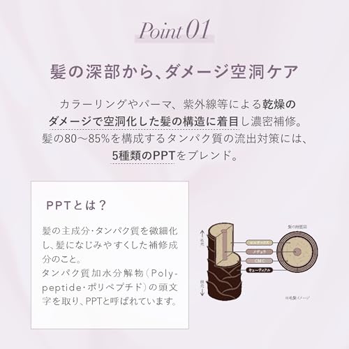 髪のダメージやパサつきに悩む方に寄り添うように、多層的に補修をサポートする工夫が詰め込まれています。